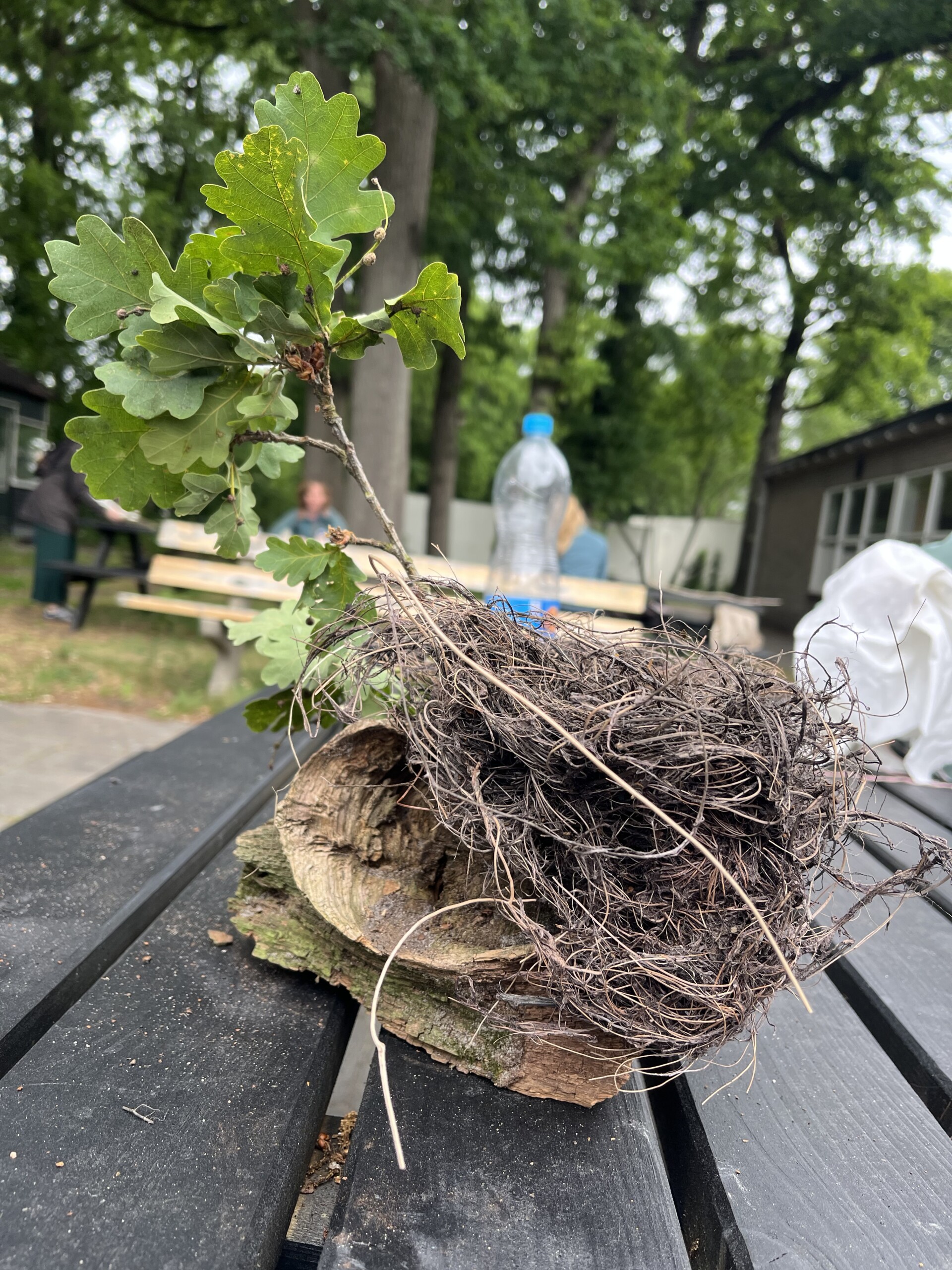 Een korte workshop in de natuur van Zonnestraal bracht deelnemers samen om, met gevonden en meegebrachte materialen – zoals hout, bladeren, steen, plastic afval, een oude borstel, stof en touw – een verbeelding te maken van iemand die veel voor hen betekend heeft. Door te werken met tastbare materialen ontstond er ruimte om gevoelens en gedachten te ordenen via het doen zelf. Niet praten over, maar maken en kijken naar wat ontstaat, bood onverwachte inzichten.